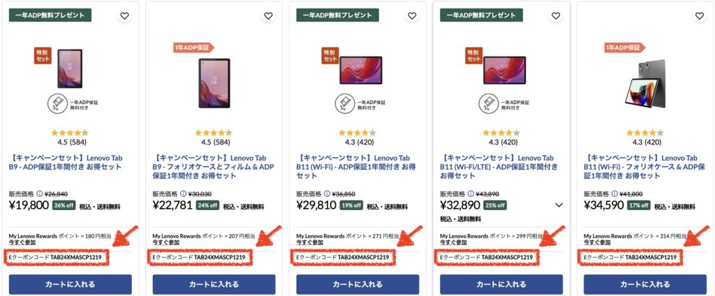 BESTBUYSETTAB | 22% | Lenovo Tabシリーズ | 未定 |