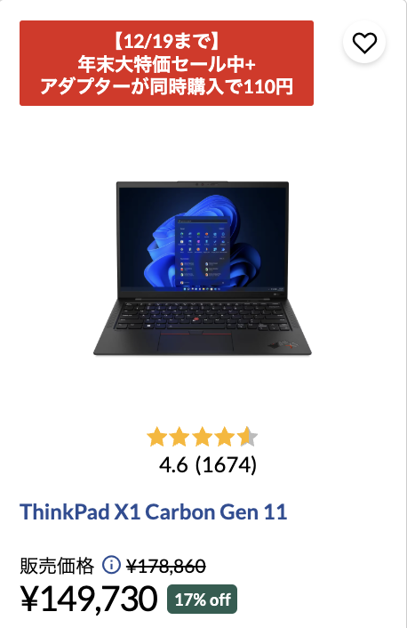 しかもAI処理も快適にこなせるフラッグシップThinkPadが今なら42%OFF…。