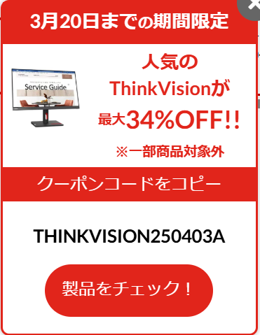AIを搭載したThinkPadシリーズが対象のクーポンです。