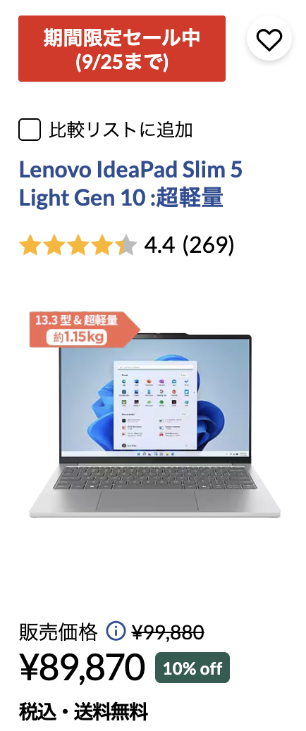 1WEEKSALEクーポン対象PCを確認する【レノボ公式】>>>