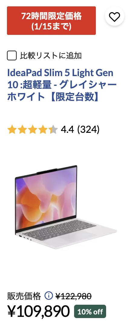 今回は45%OFFとなっているので、浮いた分の資金をメモリ・SSDアップグレードに回すとマルチタスク性能が高いノートPCに化けます。