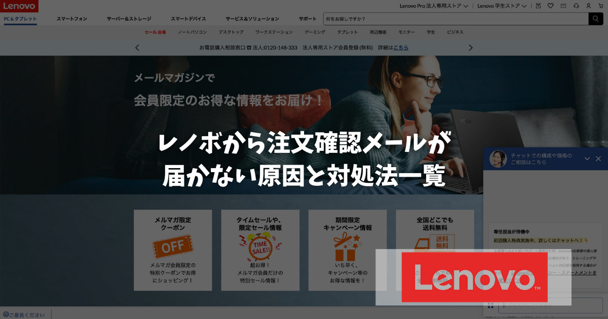 こちらの記事では、レノボから注文確認メールが届かない原因と対処法を記載していきます。