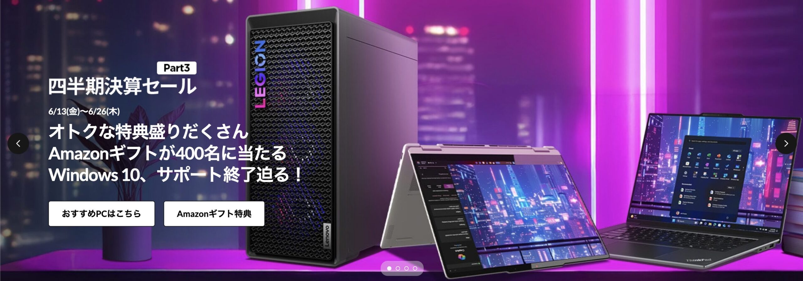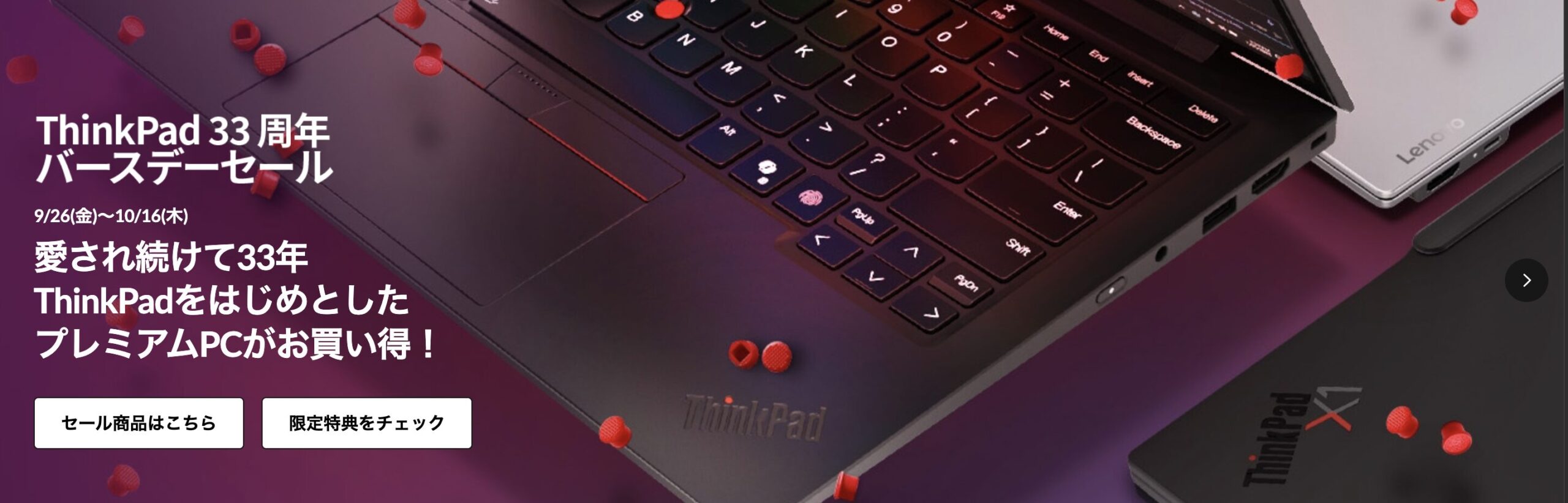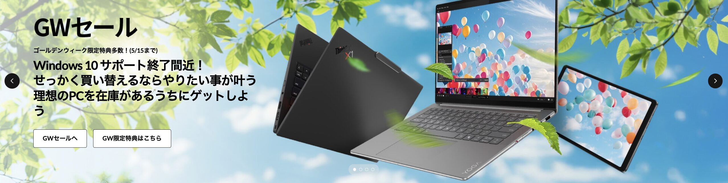 レノボでは、定期的にPCが大幅値引きされるセールと、ポイント還元や製品プレゼントが行われるキャンペーンが開催されています。