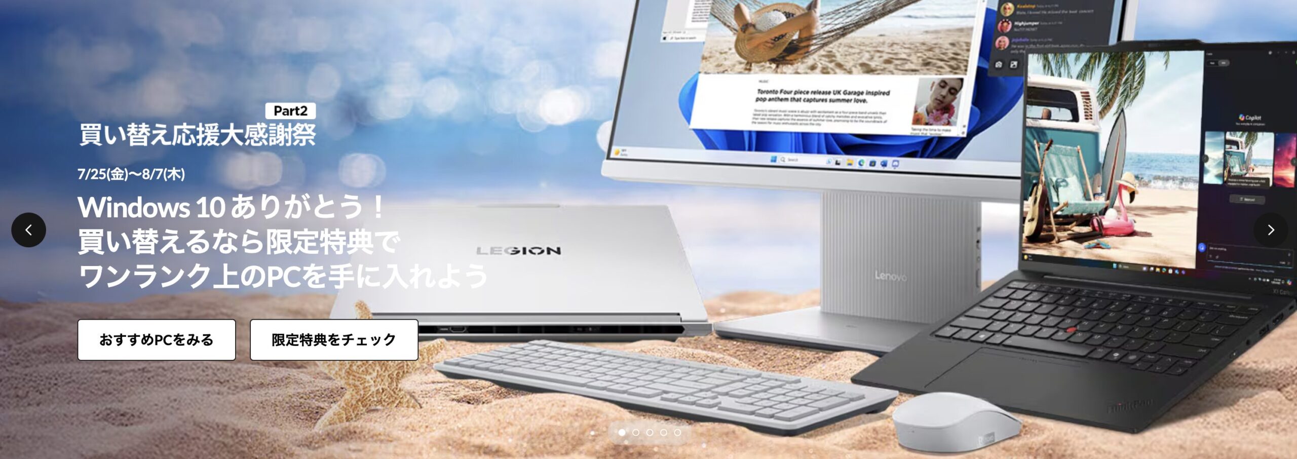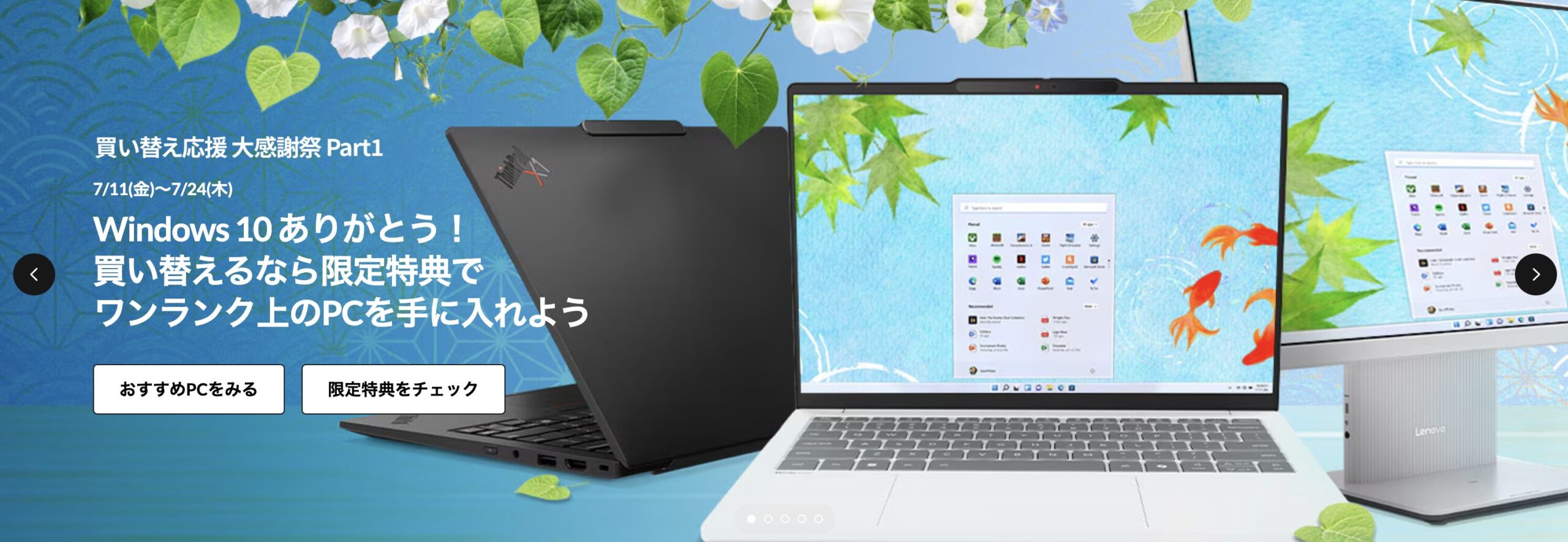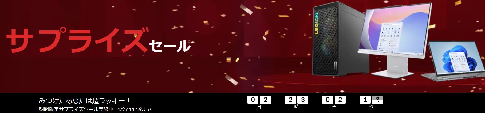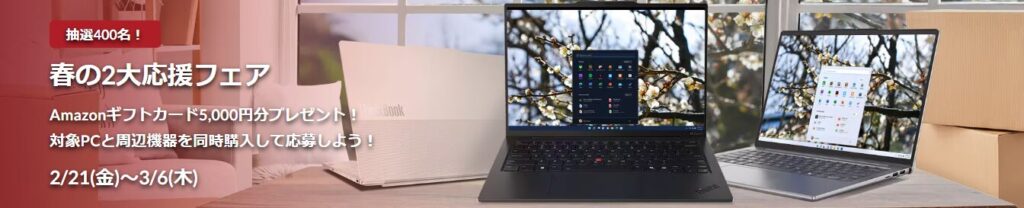 レノボでは、定期的にPCが大幅値引きされるセールと、ポイント還元や製品プレゼントが行われるキャンペーンが開催されています。
