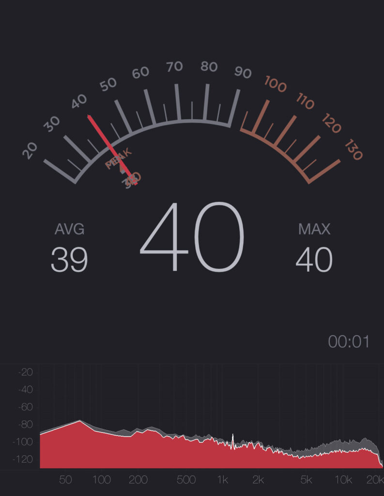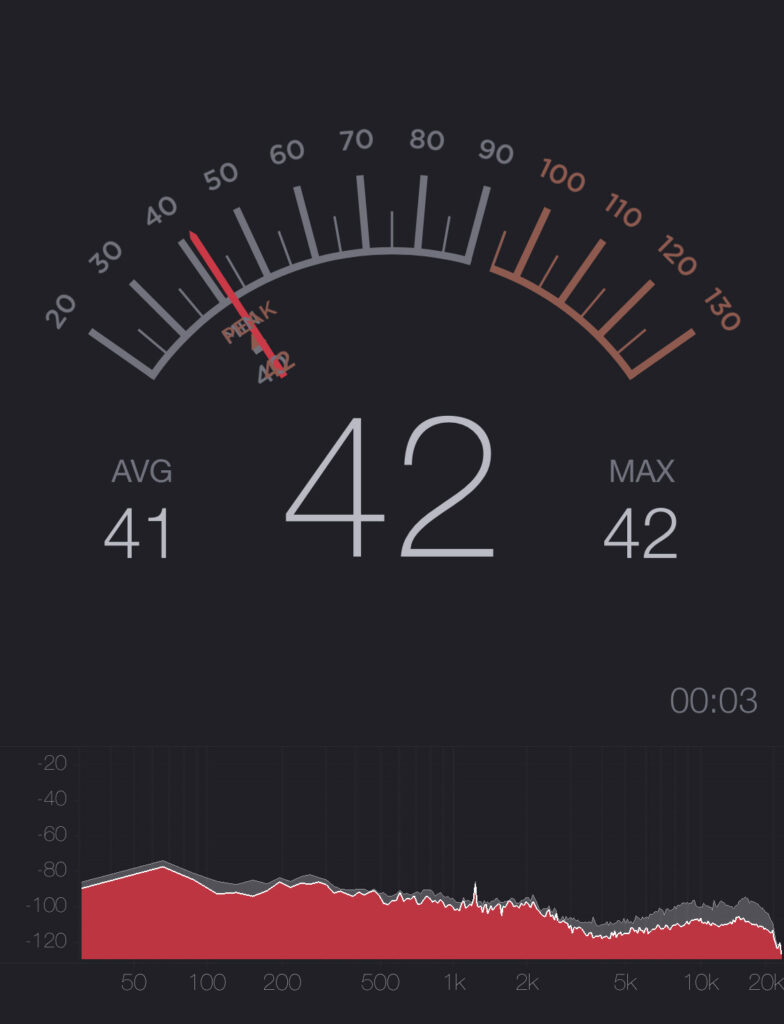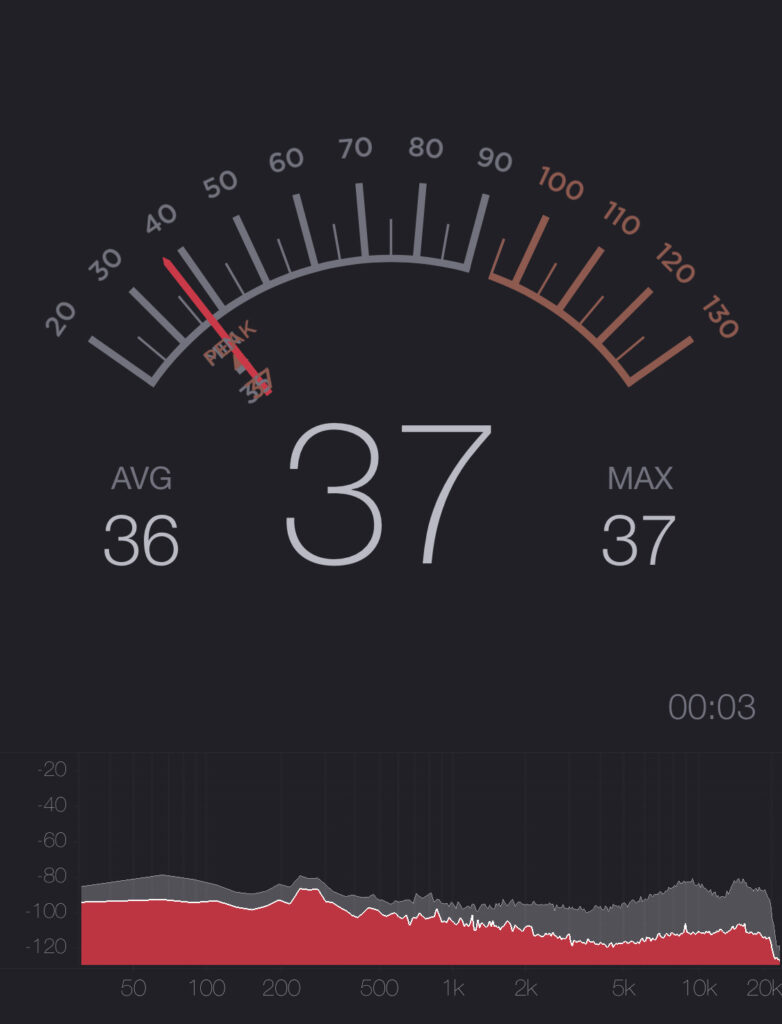 静音性を調べるにあたり、スマホアプリの「dB Meter」で測定しています。