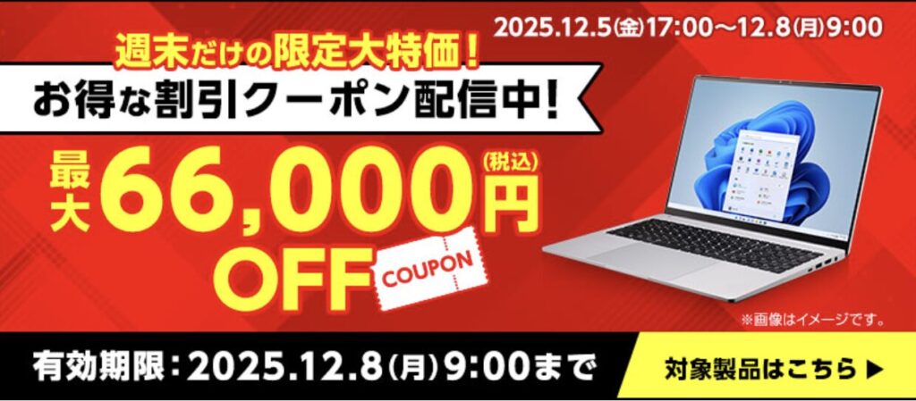 マウスコンピューター内のクーポン・セールの対象にもなるため、お得に購入できるのも魅力です。