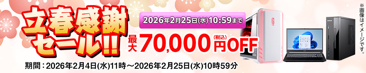 マウスコンピューターでは、現在「立春感謝セール」が開催中です。