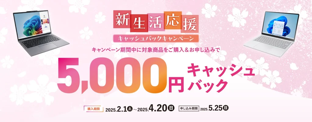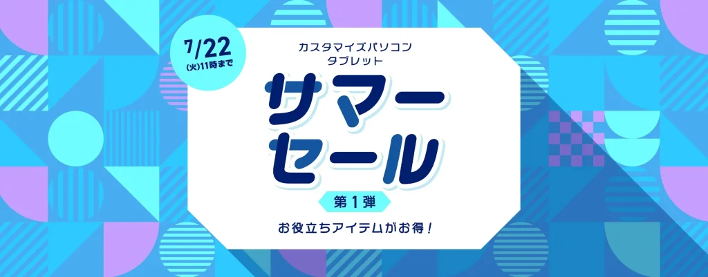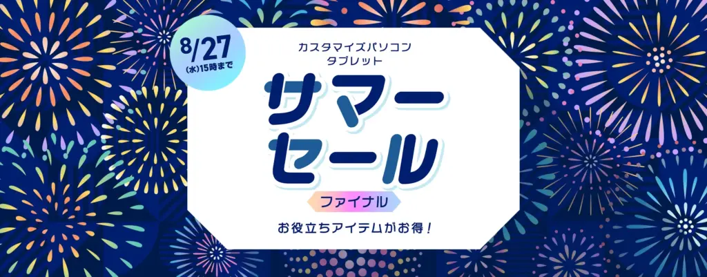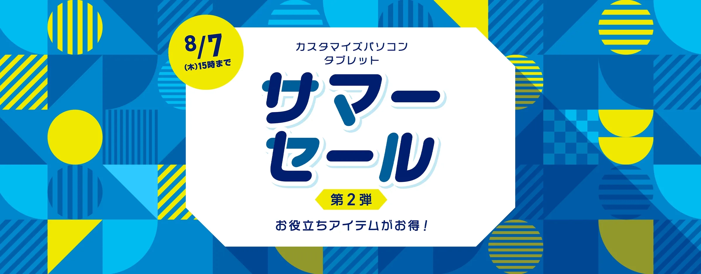 対象商品購入で最大20,000円のキャッシュバックがもらえる嬉しいキャンペーンですが、今ならサマーセールも開催中なため、普段より何倍もお得にPCをゲットする大チャンスです。