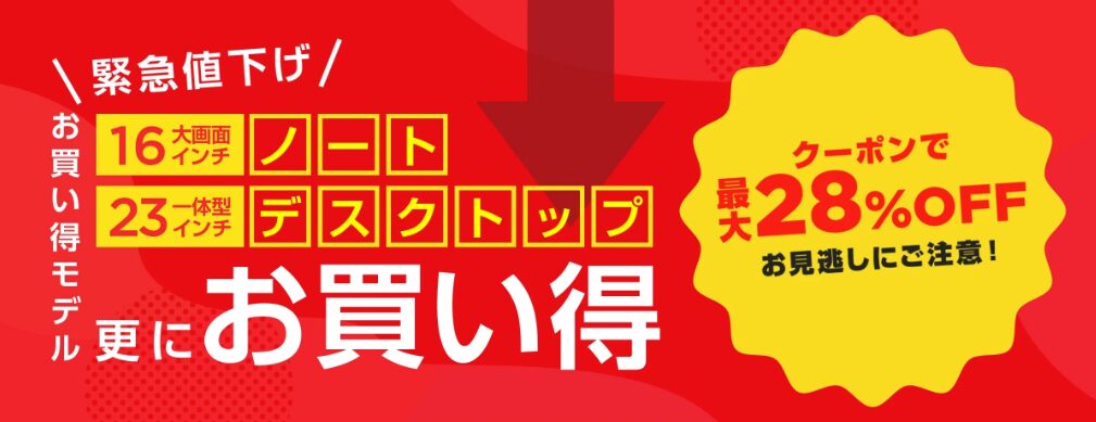 - 16型ノートPCと23インチデスクトップが更にお得価格で販売