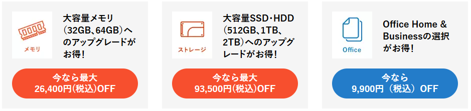 - SSDやメモリのお得カスタマイズや豪華特典も見逃すな!