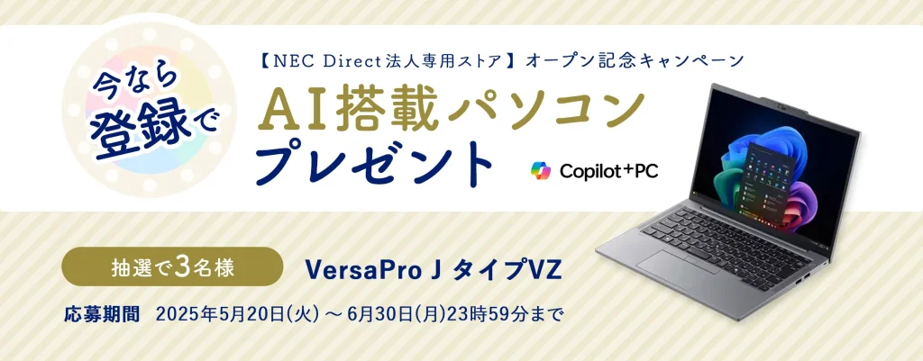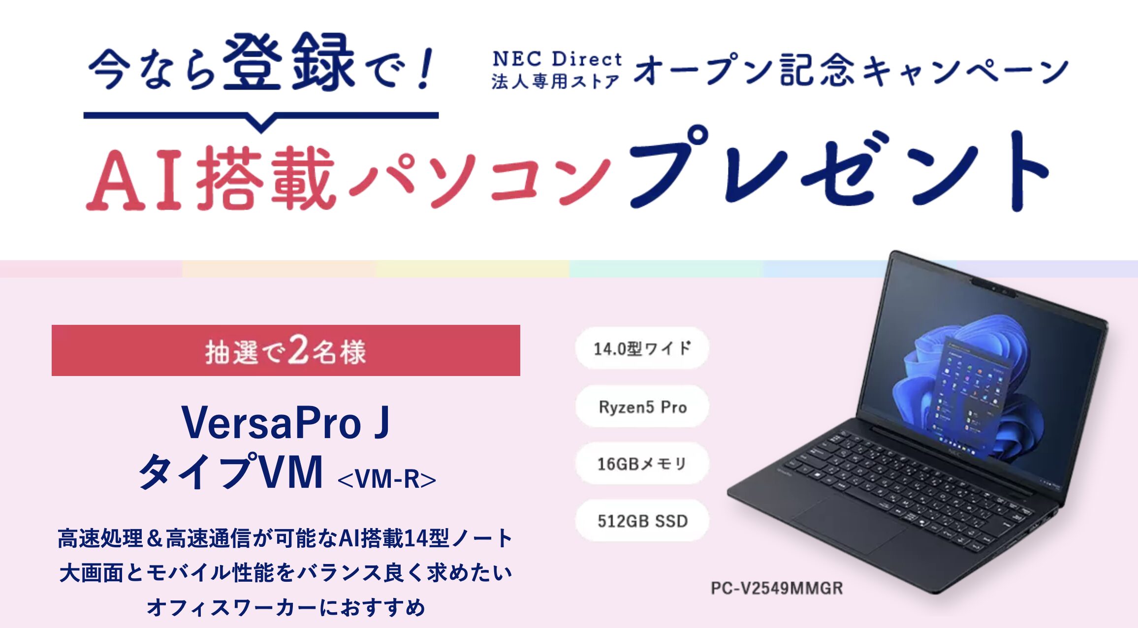 - 法人専用ストア オープン記念で「VersaPro J タイプVM」が抽選で2名に当たる!