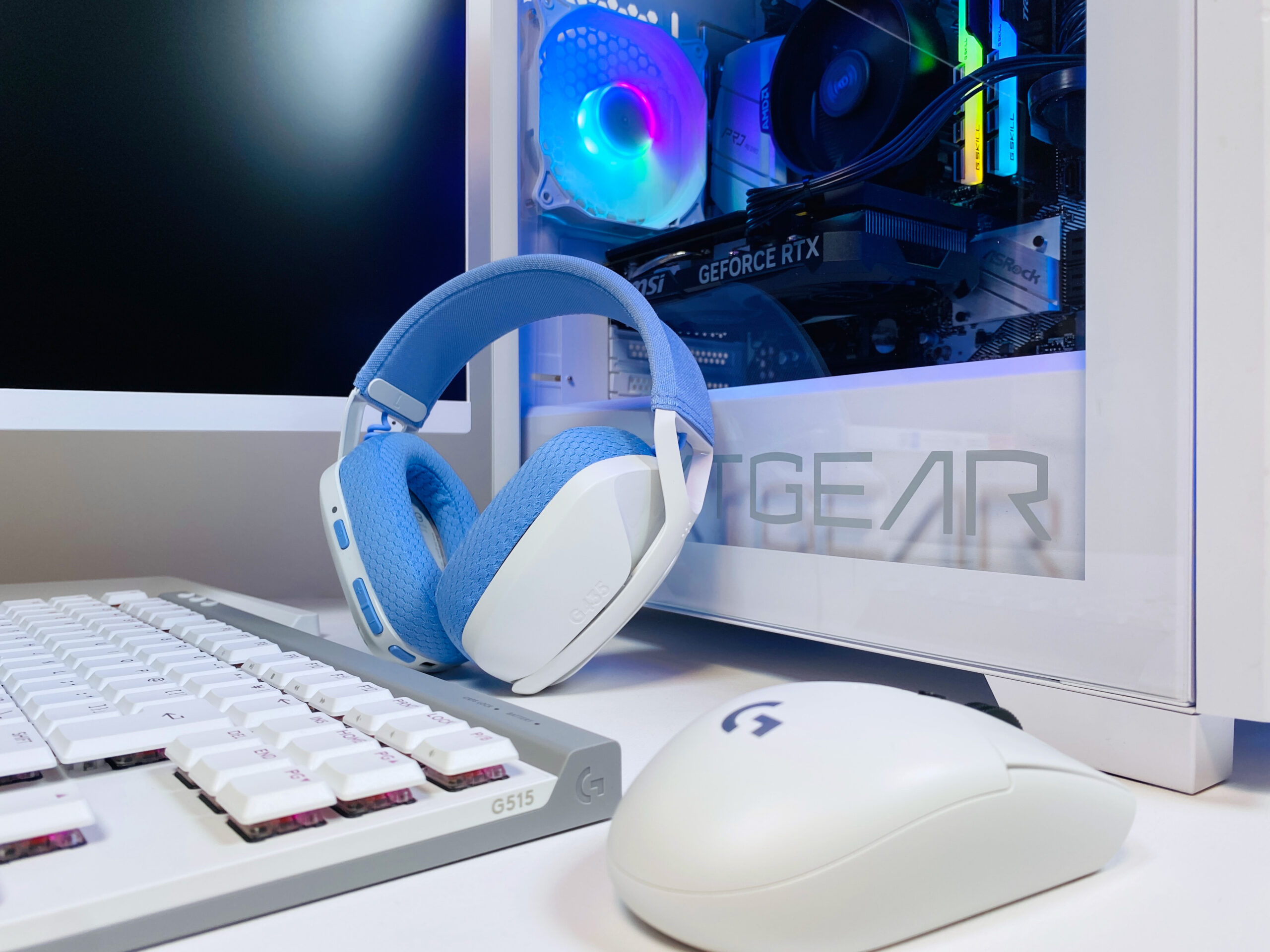 ヘッドセットの淡い水色がかったパープルも、ネクストギアセットモデルPCのどのカラーとも相性が良く万人受けしそうな印象です。