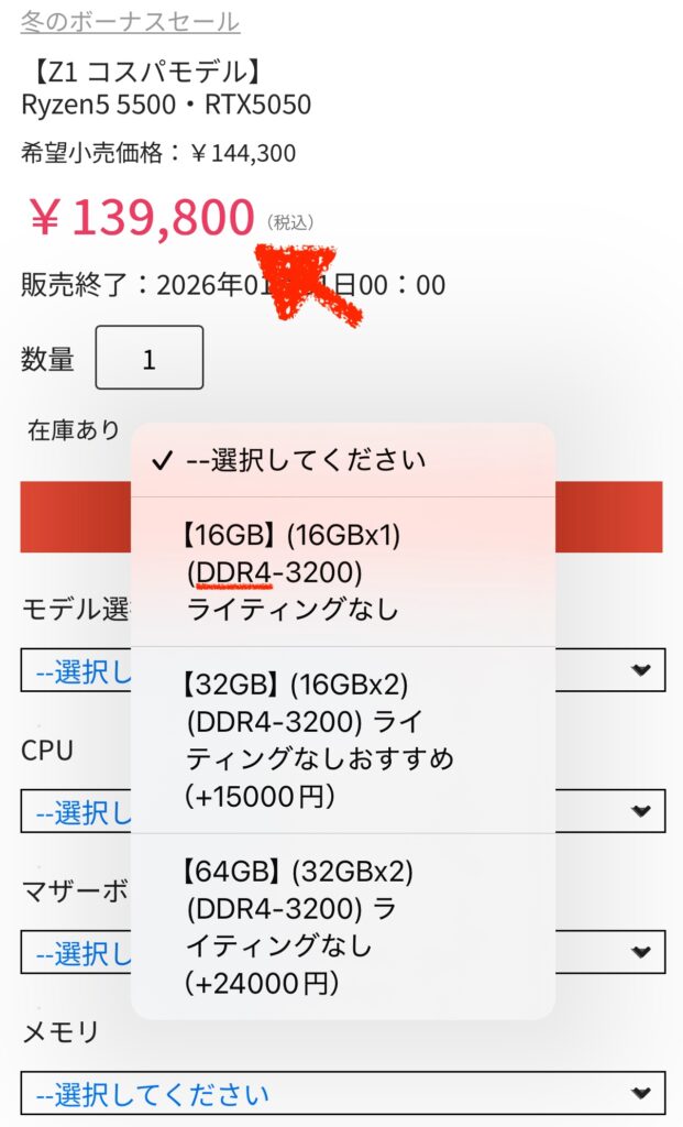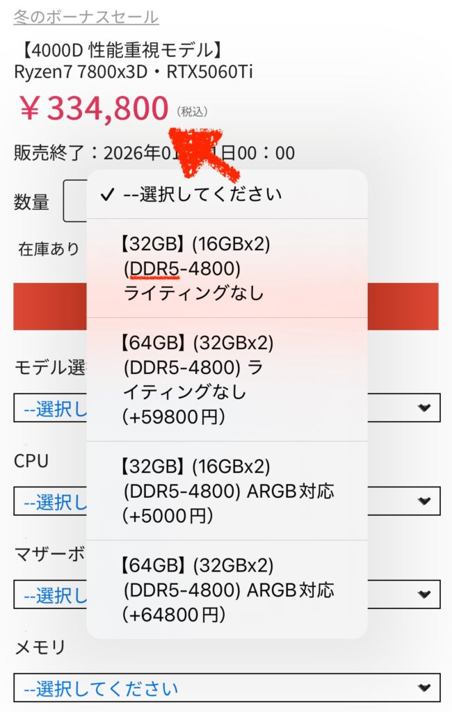 そのため、CPUやGPUのアップグレード、メモリ・ストレージ増設などを行っても、クーポンの割引額自体は変わらず適用されるケースが一般的です。