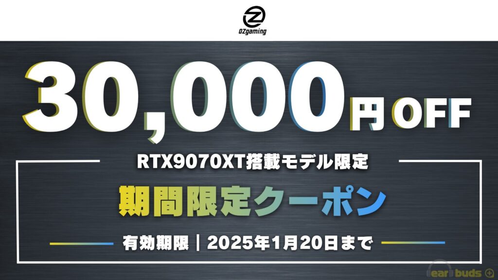 RTX9070XT搭載モデル限定クーポン【30,000円OFF】