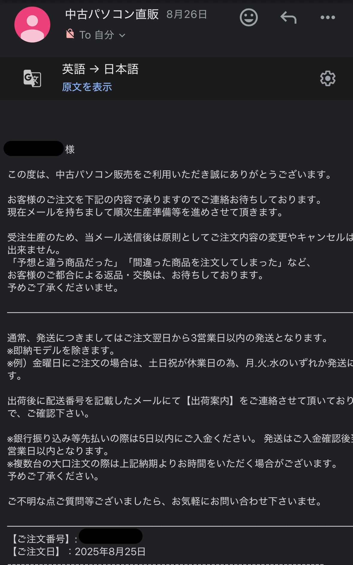 - 8月25日 17:27|注文確定メール(自動)が届く