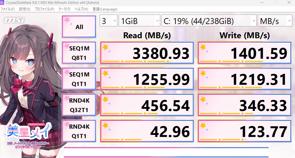 しかし書き込み速度は少々遅めなので、このPCで重めデータのやり取りはやや不向きという印象です。