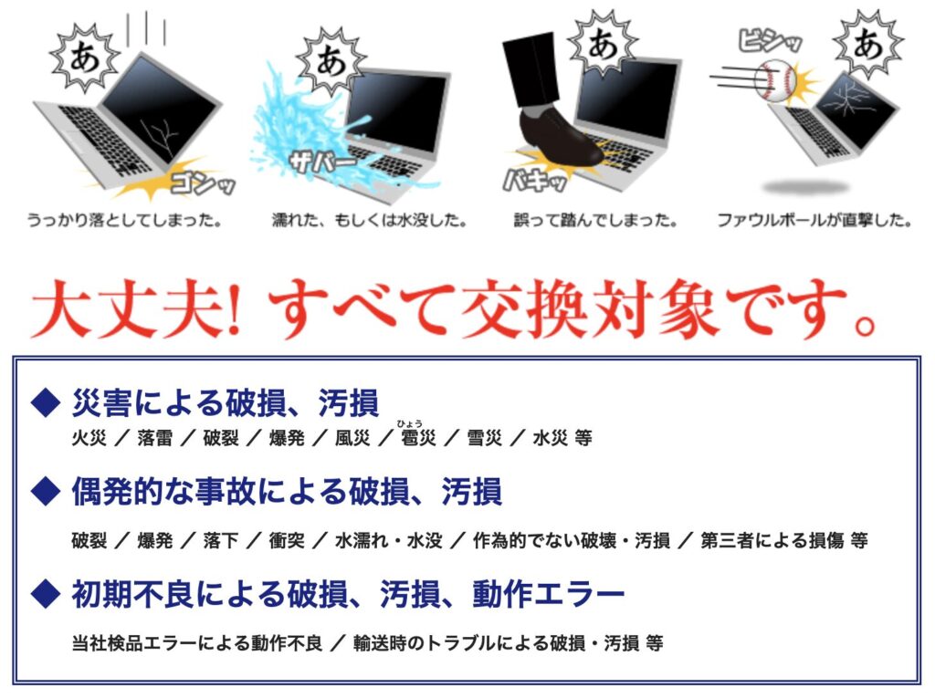 こちらは商品到着後180日以内であれば、PCが故障した場合に無料交換が可能という優れたサービスです。