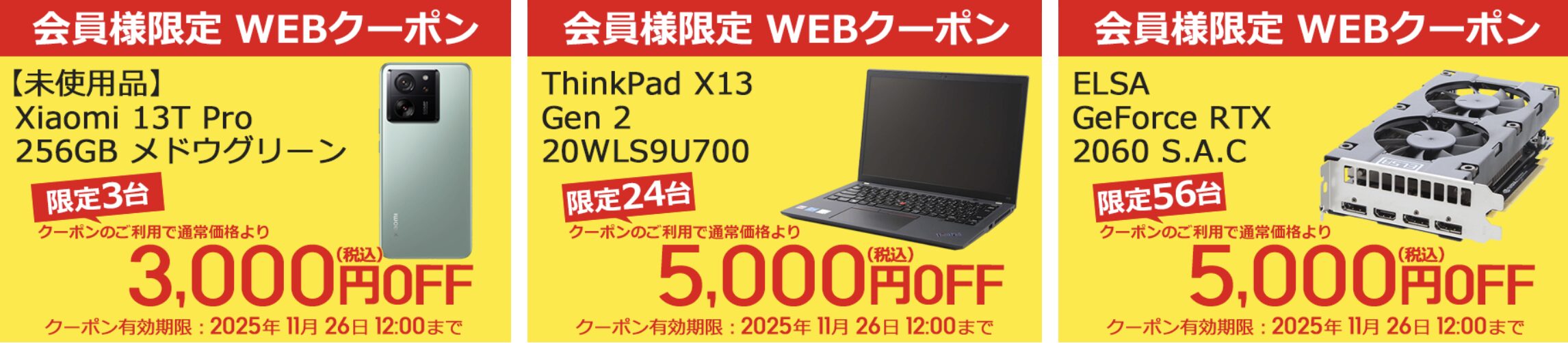 スマホ・タブレット・PCパーツなど様々な商品がラインナップされていますが、一回使用しただけの商品が最大30,000円OFFで買えるチャンスと考えれば激アツです…