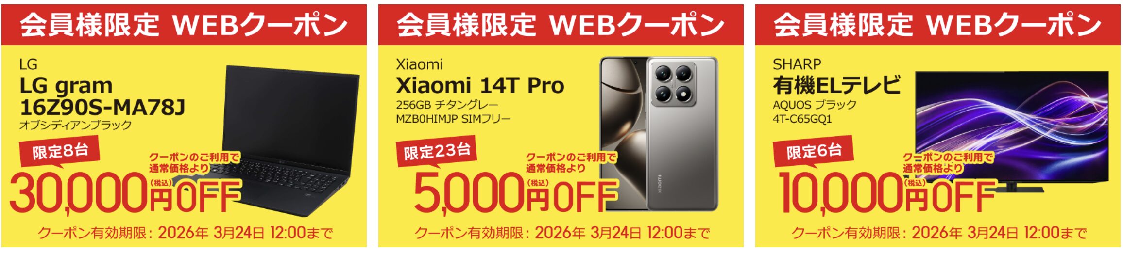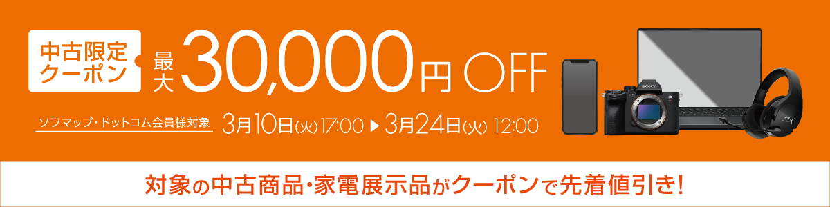 スマホ・タブレット・PCパーツなど様々な商品がラインナップされていますが、一回使用しただけの商品が最大30,000円OFFで買えるチャンスと考えれば激アツです…