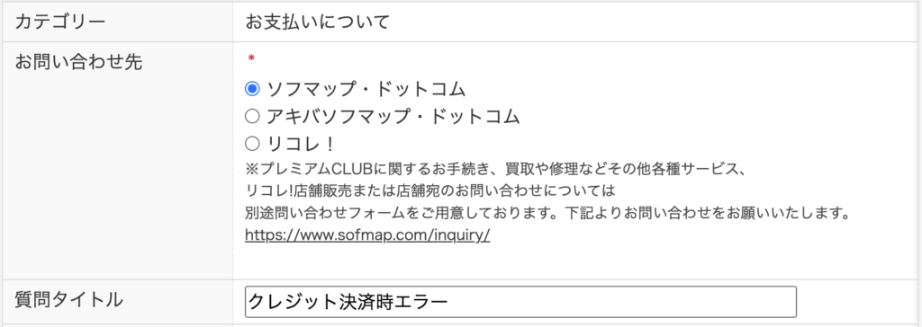 なお、問い合わせる際は、質問タイトルを 「クレジット決済時エラー」と記載しましょう。