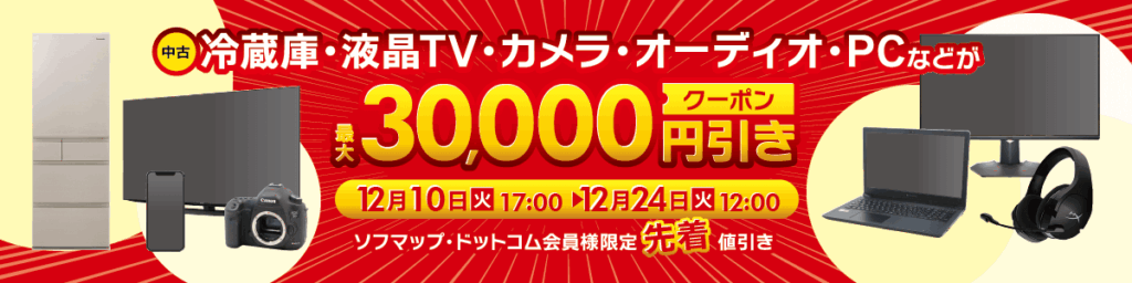 ソフマップ・リコレは共に中古PCや中古製品に対するセール・クーポン・キャンペーンを実施しています。