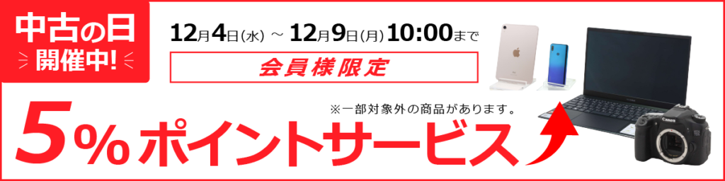 毎月5/15/25日に5%ポイントUPする中古の日は、店頭で購入・売却時に適用されます。