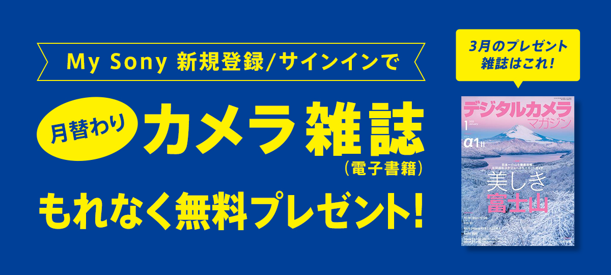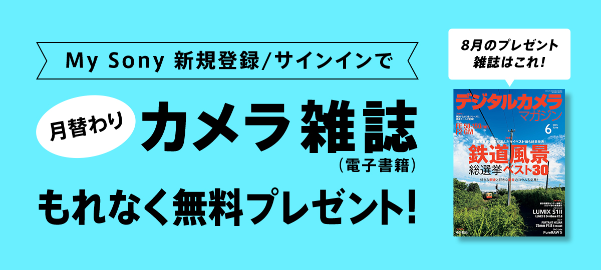- 【My Sony登録者限定】月替わりカメラ雑誌プレゼント←8/1更新!