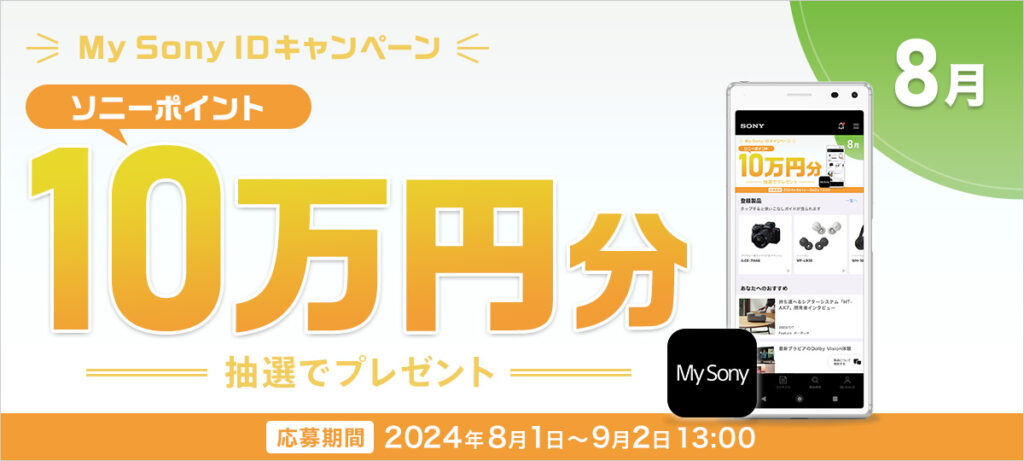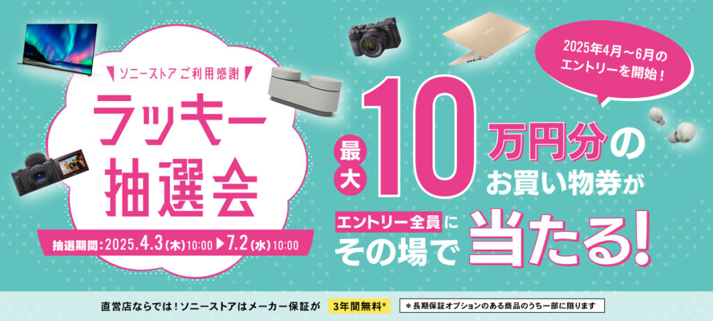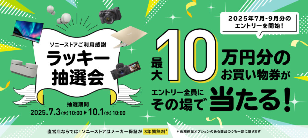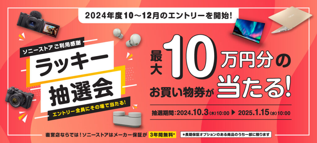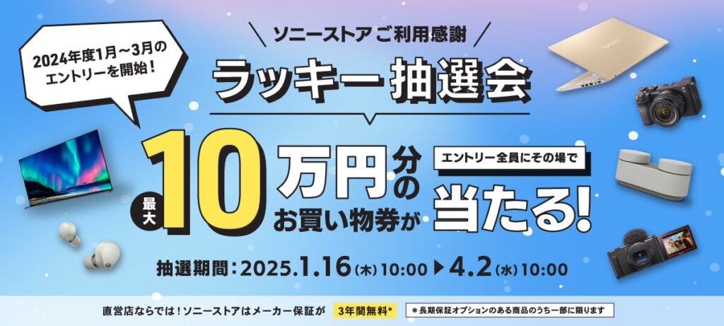 だってアカウントを持っているだけ(要エントリー)で、ソニーストアで使える最大100,000円分のお買い物券が当たるかもしれないんです。