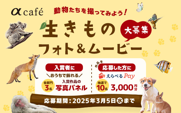 α cafeはSONYが運営する「αシリーズ交流コミュニティ」で、αユーザーの作品投稿やコンテスト企画で腕だめし、またプロ講師によるオンライン講座などが利用できます。