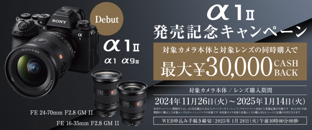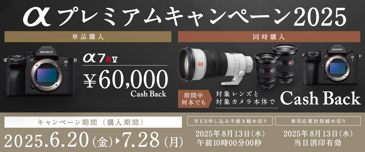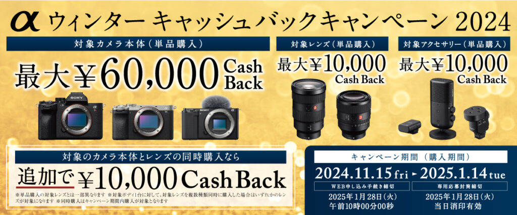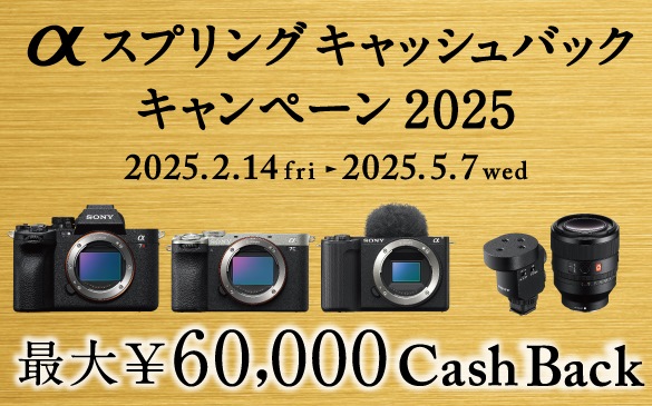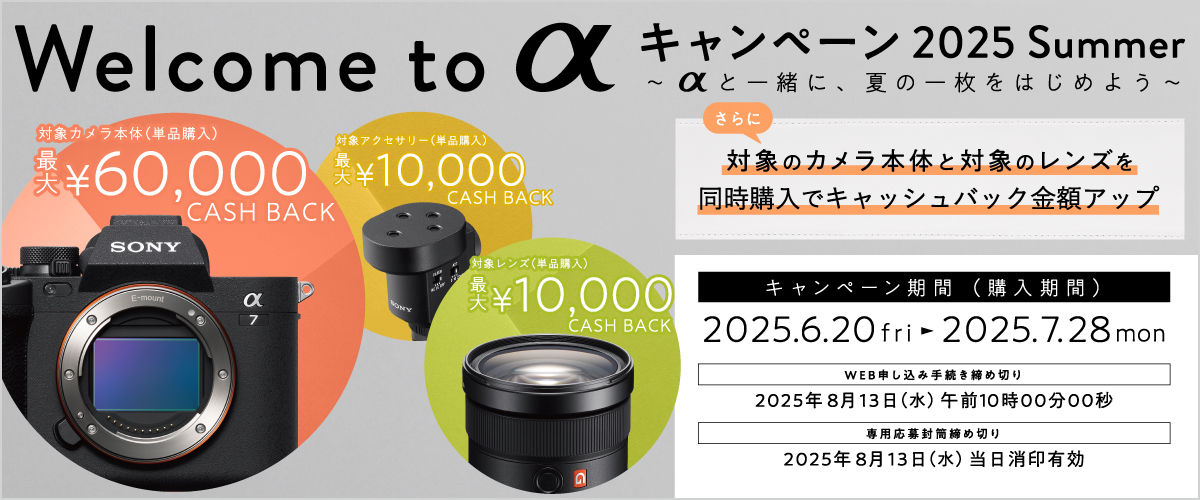 - 期間中に「αシリーズカメラ」の購入&エントリーで高額キャッシュバック!