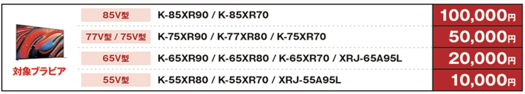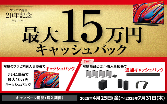 対象のブラビア購入とエントリー完了で最大15万円のキャッシュバック!