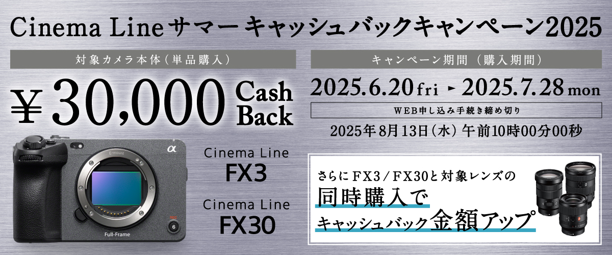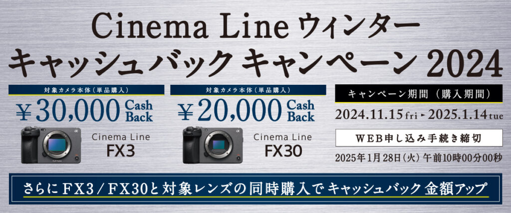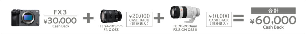 - FX3またはFX30+期間中に対象レンズ同時購入で高額キャッシュバック還元!