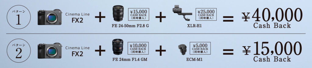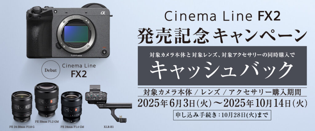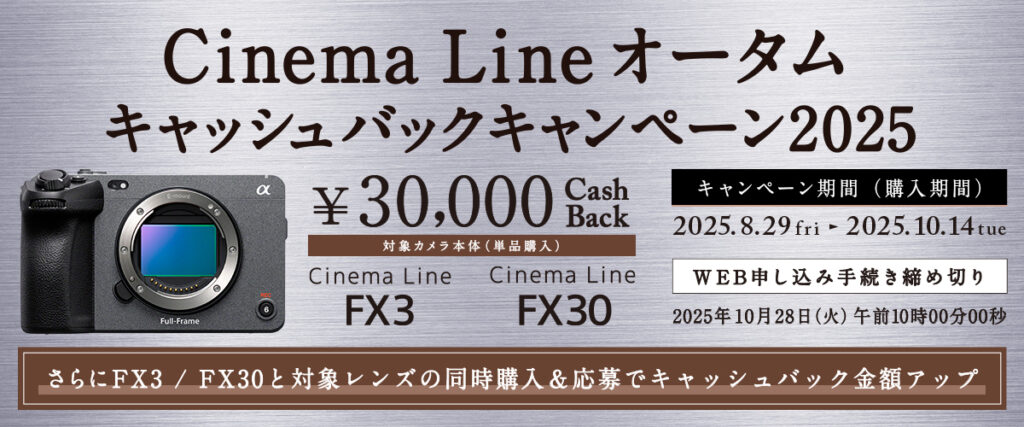シネマラインである「FX3、FX30」と対象レンズを同時購入することで高額キャッシュバックが還元されるキャンペーンですので、この機会に一流カメラオーナーデビューもオススメです。