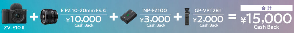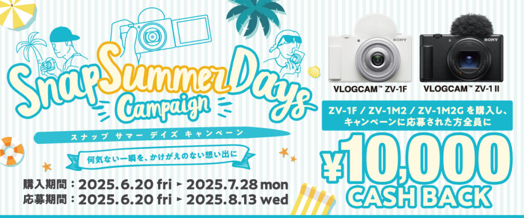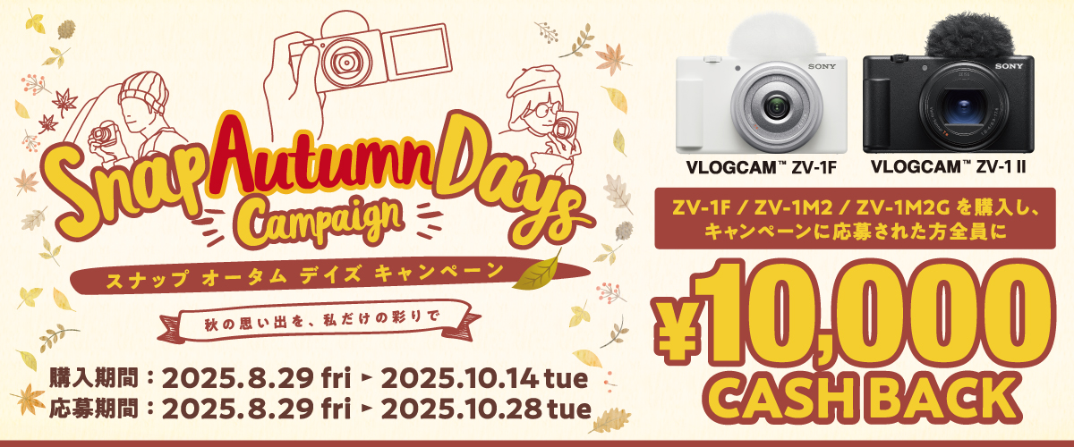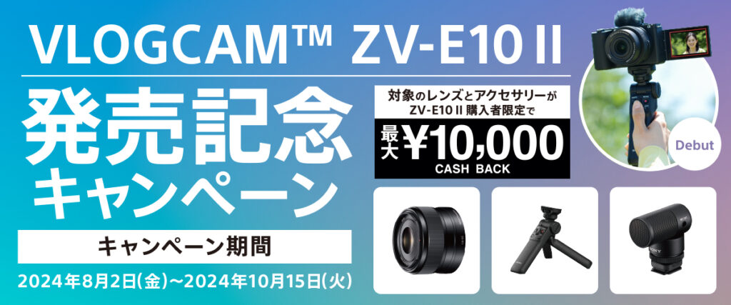 - 期間中に「VLOGCAM ZV-1F、VLOGCAM ZV-1 II」の購入&エントリーで高額キャッシュバック!