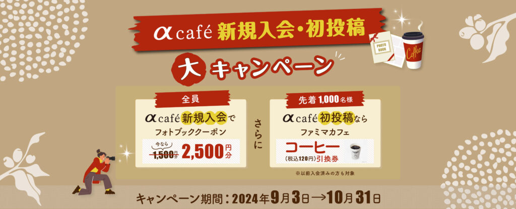 - キャンペーン期間内にαcafe入会で、対象のオンライン撮影講座を無料受講できるクーポンゲット!