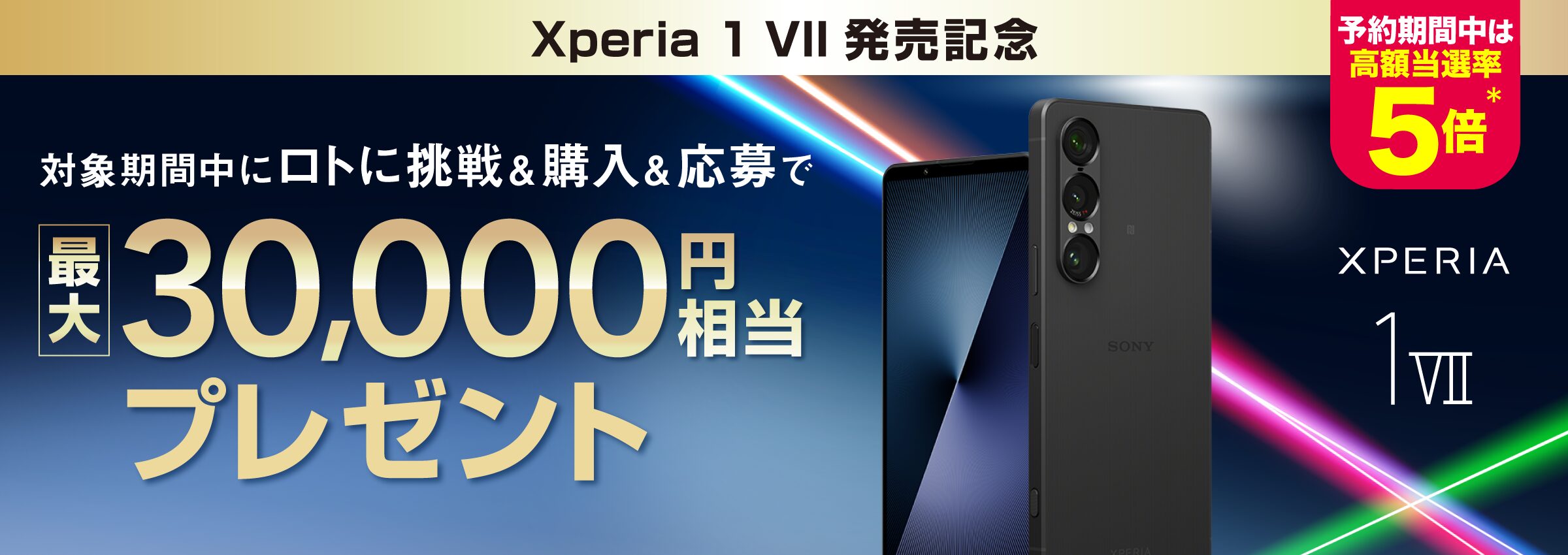 このキャンペーンでは、SONYの最新スマホ「Xperia 1 Ⅶ」の発売を記念して、「ロトくじ」を引くことができます。