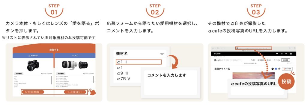 応募方法はαcafeにサインインし、投稿ページ内で「野鳥祭2025」タグを追加して作品を投稿するだけです。