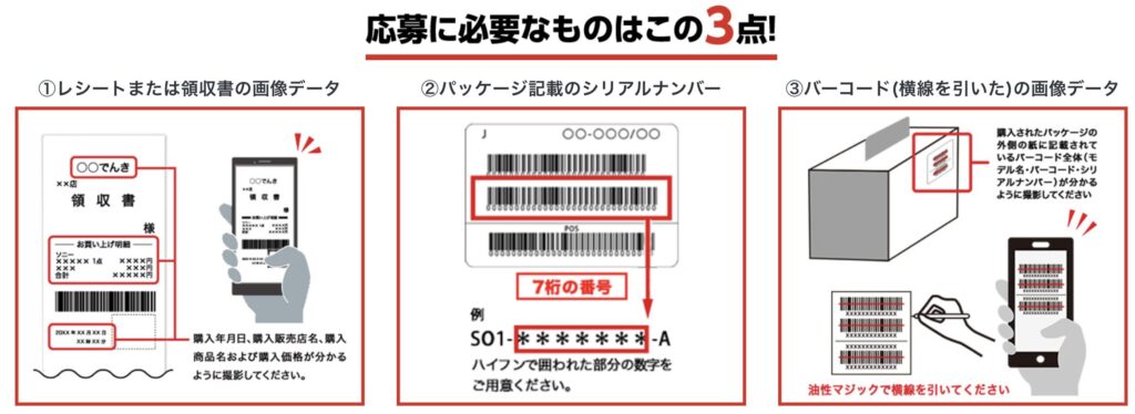 こちらのエントリーにはWF-1000XM5購入時のレシート、または領収書のコピーおよび製品パッケージのバーコード部分が必要となります。