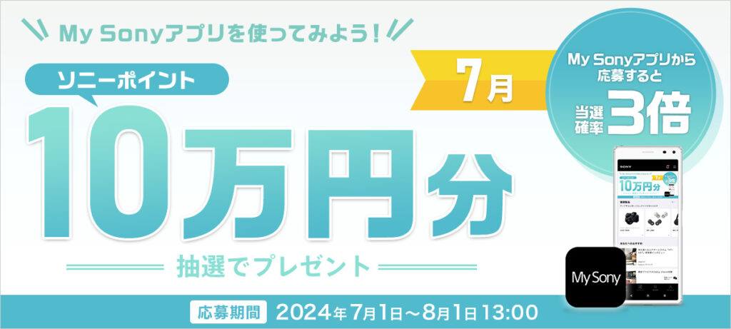 - アンケート回答&キャンペーン応募で1万円分のソニーポイントが抽選で10名様に当たる!