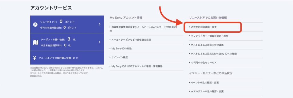 マイページステータスをチェックして「キャンセル可否」を確認する【ソニーストア公式】>>>