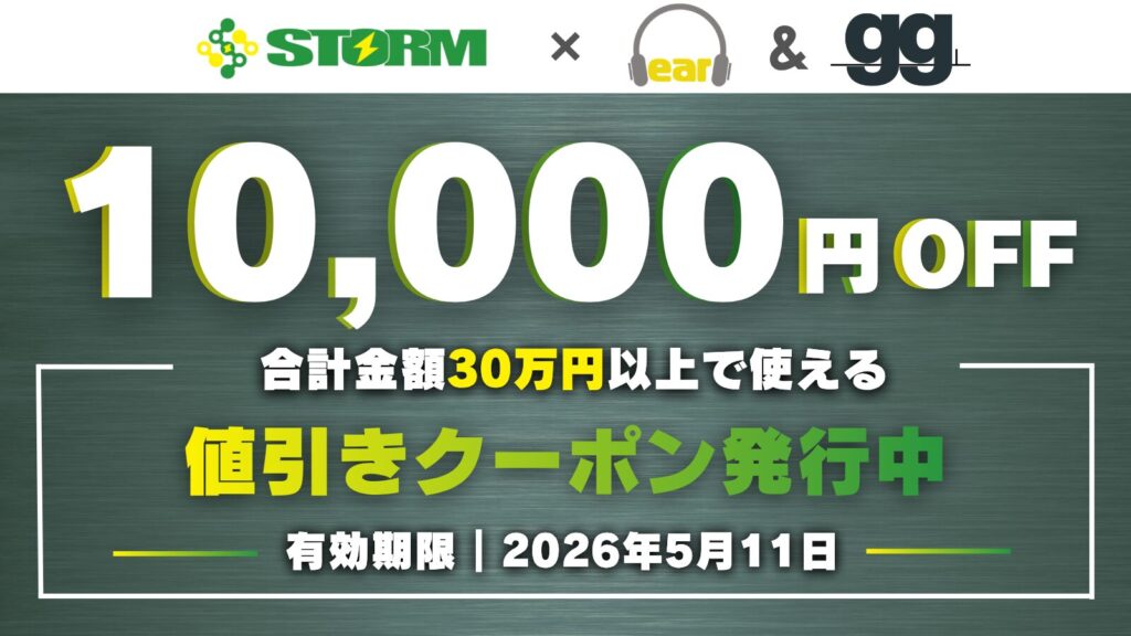 イヤバズ&gg限定STORMクーポンとは、STORMから当サイト「イヤバズ」&姉妹サイト「gg」限定で発行されたクーポンです。