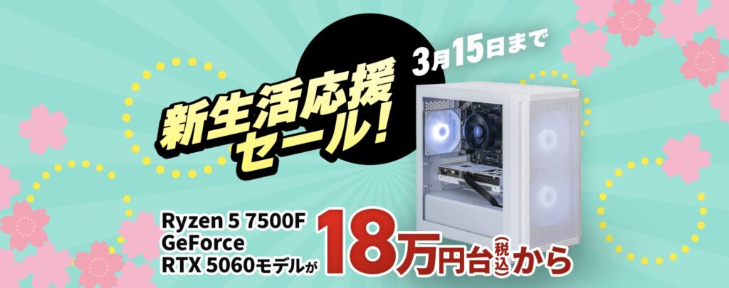 開催期間は2025年3月15日(日)までとなっており、初心者向けのコスパモデルから、最短当日出荷が可能な「即納モデル」まで、多彩なラインナップが特別価格で提供されています。