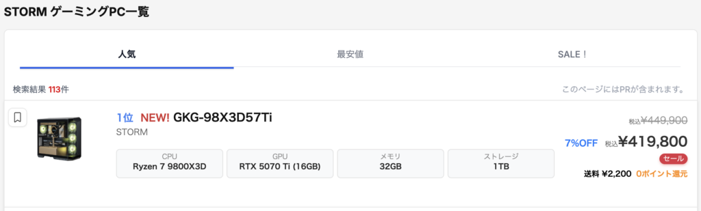 STORMで人気なPCを一覧でチェックする【STORM公式】>>>