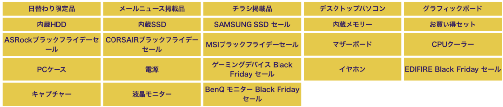 この豊富なジャンルを見てください…このセールで自作PCが組めるほどの多彩なラインナップです。