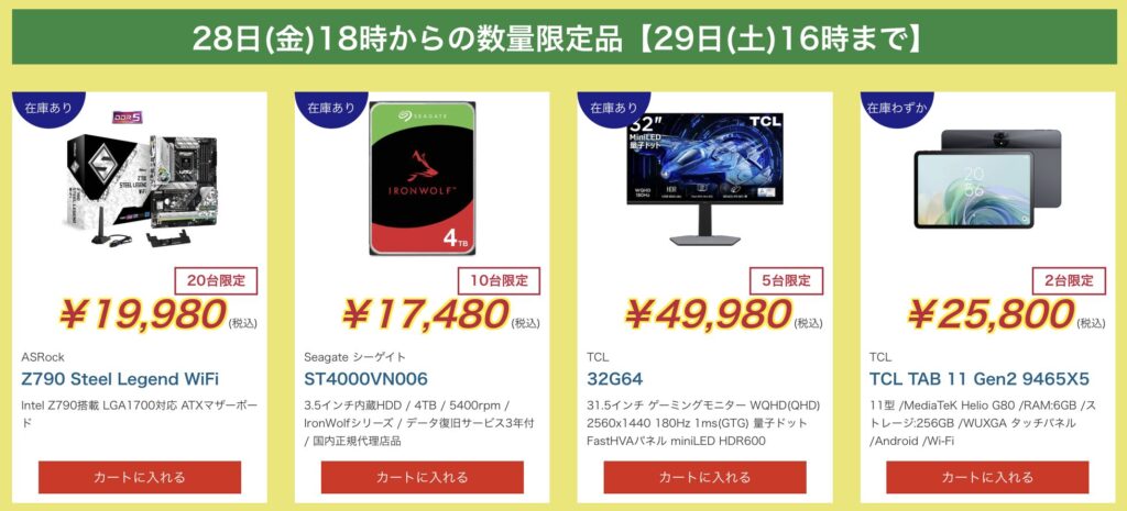 どの商品も数量限定ゆえに争奪戦となりますので、これからPCの自作や、BTO PCカスタム予定の方は今すぐセール会場をチェックしましょう。