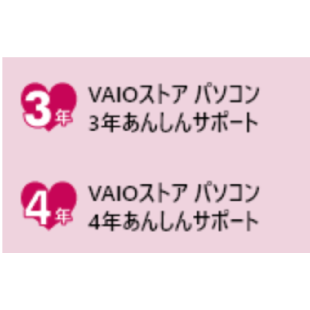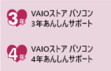 - VAIOストアで購入する大半のパソコンには、3年保証(3年延長サポート)が無料で付与されている。(認定整備済PCを除く)