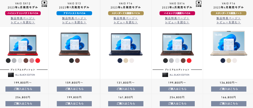 理由として、VAIOは毎年新製品を発売するため、たとえ去年の製品を買ったとしても性能的に衰えていることはまずありません。