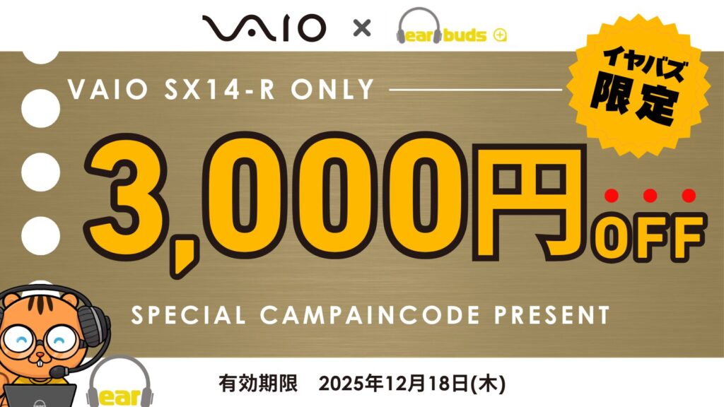 イヤバズでは、他メディアでは発行されていないVAIO限定キャンペーンコードが発行されています。