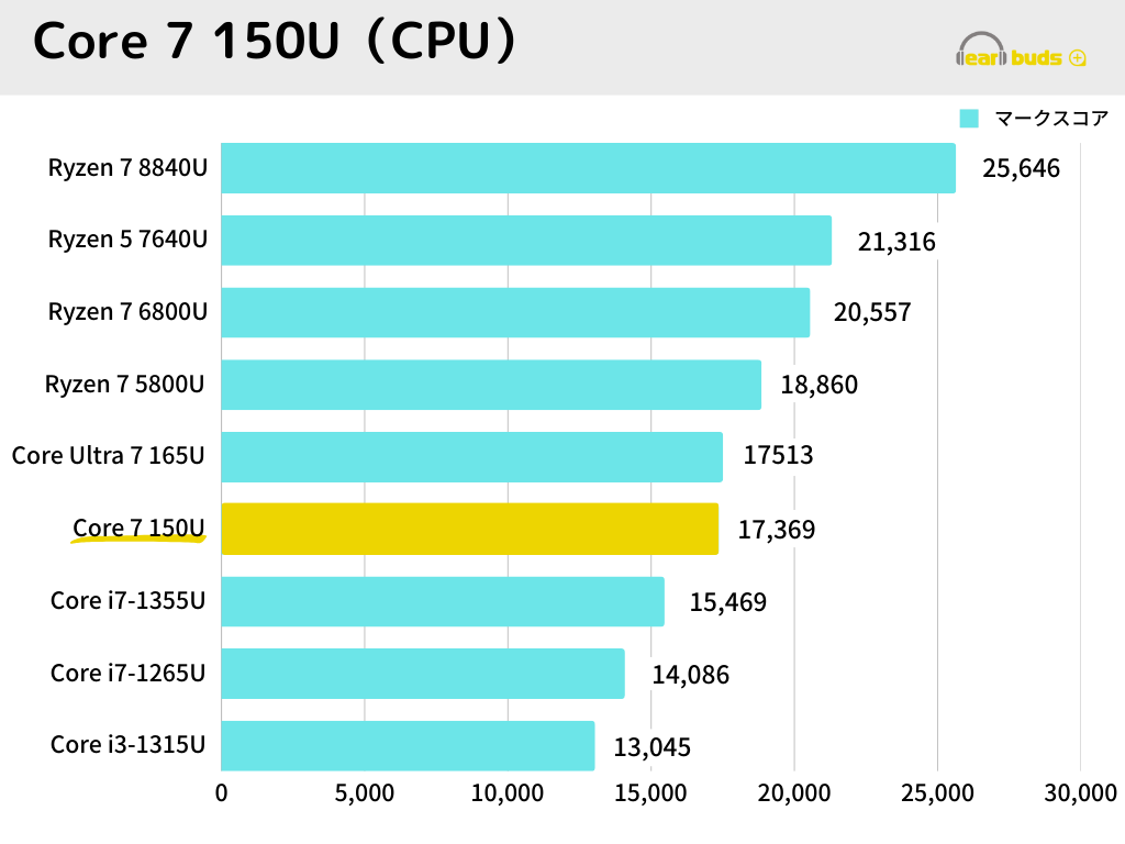 Core 7-150Uは省電力設計のCPUで、バッテリー性能を重視したいノートパソコンに搭載されます。