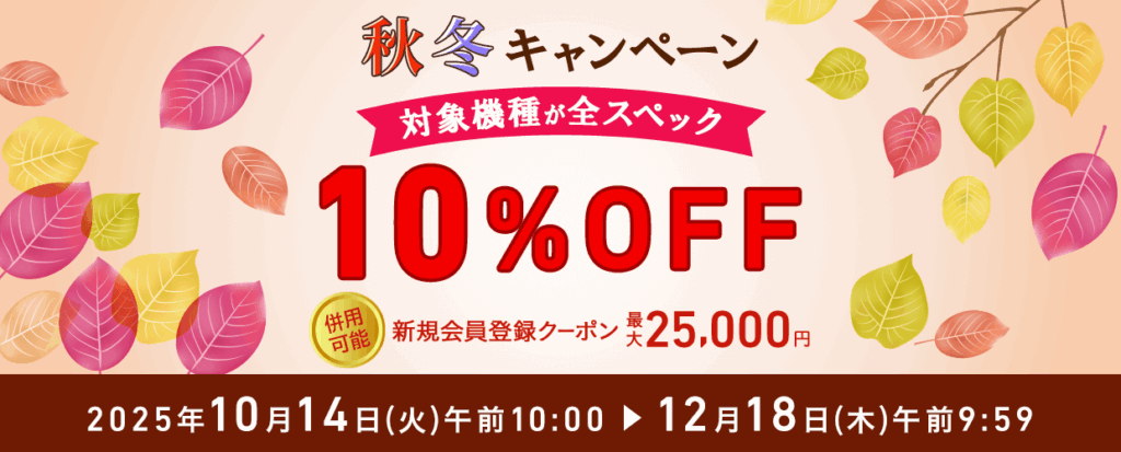 本キャンペーンでは対象機種の全スペックが10%OFFで購入できるので、「スペックが足りない…」と悩む必要なし!